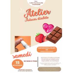 Atelier d'échange et de partage autour du diabète. Conseils, astuces, explications pour mieux...