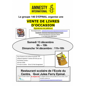 Vente de livres d'occasion, signatures de pétitions à l'occasion de l'anniversaire de la...