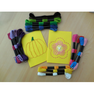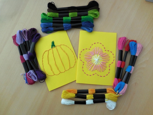 A l'issue d'une présentation sur les vieux métiers du textile, les participants peuvent s'essayer à la broderie sur carte.