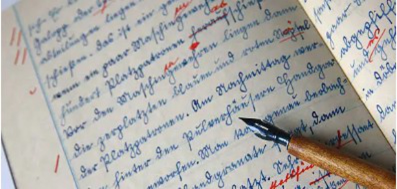 Après une présentation de documents d'archives relatifs à l'école (cahiers d'écoliers, sujets de composition, manuels scolaires), les élèves d'un jour peuvent tester l'orthographe avec une dictée à la plume.