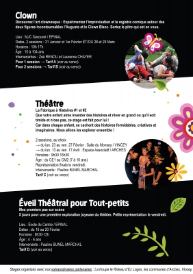 Tarifs : 105 € (pour plus d'informations, se rapprocher de la Compagnie des Joli(e)s Mômes)