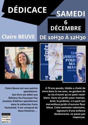 Nous avons le plaisir d'accueillir Claire Beuve en dédicace pour son roman Dédée / Un jardin pour maman ( Romans jeunesse ! )