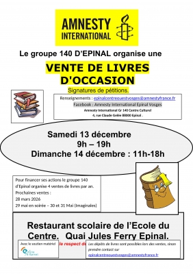 Vente de livres d'occasion, signatures de pétitions à l'occasion de l'anniversaire de la Déclaration Universelle des Droits Humains.