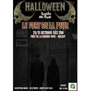 Le Fort de la peur - Halloween Aurez-vous le courage d’affronter vos peurs au sein du fort hanté ? La Ville, en collaboration avec Ludik Air Park, vous propose de participer à un escape game grandeur nature animé par de véritables comédiens. Samedi et dimanche après-midis réservés aux familles. Samedi soir 25 et vendredi soir 31 réservés aux adultes (interdit aux moins de 14 ans). Tarif : 20 € / équipe (6 personnes maximum). Inscription en mairie. Fort de la Grande Haye.